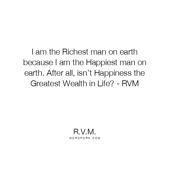 I am the Richest man on earth because I am the Happiest man on earth. After all, isn’t Happiness the Greatest Wealth in Life? - RVM