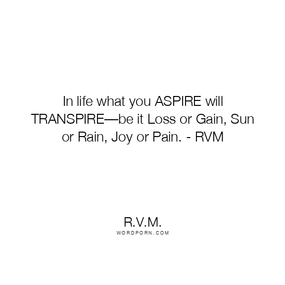 In life what you ASPIRE will TRANSPIRE—be it Loss or Gain, Sun or Rain, Joy or Pain. - RVM