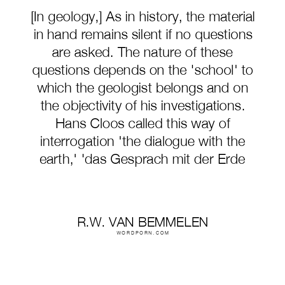 [In geology,] As in history, the material in hand remains silent if no questions are asked. The nature of these questions depends on the 'school' to which the geologist belongs and on the objectivity of his investigations. Hans Cloos called this way of interrogation 'the dialogue with the earth,' 'das Gesprach mit der Erde