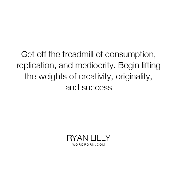 Get off the treadmill of consumption, replication, and mediocrity. Begin lifting the weights of creativity, originality, and success