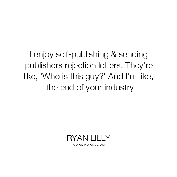I enjoy self-publishing & sending publishers rejection letters. They're like, 'Who is this guy?' And I'm like, 'the end of your industry