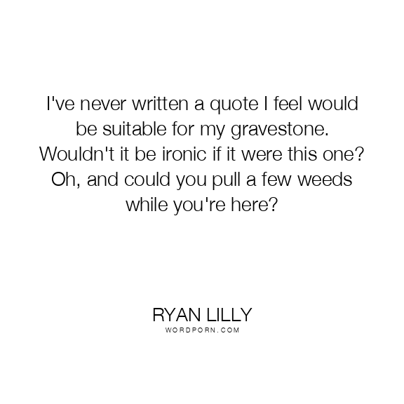 I've never written a quote I feel would be suitable for my gravestone. Wouldn't it be ironic if it were this one? Oh, and could you pull a few weeds while you're here?