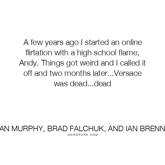 A few years ago I started an online flirtation with a high school flame, Andy. Things got weird and I called it off and two months later...Versace was dead...dead