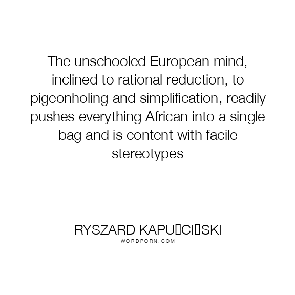 The unschooled European mind, inclined to rational reduction, to pigeonholing and simplification, readily pushes everything African into a single bag and is content with facile stereotypes