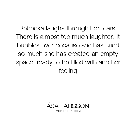 Rebecka laughs through her tears. There is almost too much laughter. It bubbles over because she has cried so much she has created an empty space, ready to be filled with another feeling