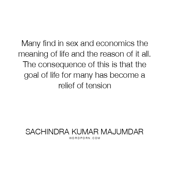 Many find in sex and economics the meaning of life and the reason of it all. The consequence of this is that the goal of life for many has become a relief of tension