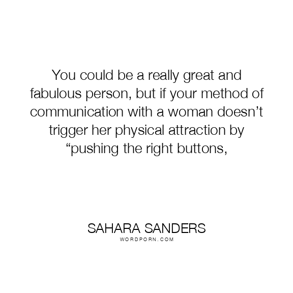 You could be a really great and fabulous person, but if your method of communication with a woman doesn’t trigger her physical attraction by “pushing the right buttons,