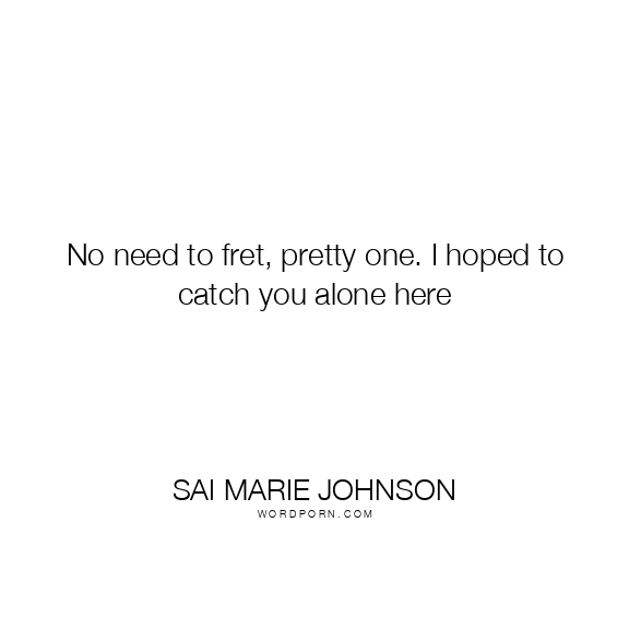 No need to fret, pretty one. I hoped to catch you alone here
