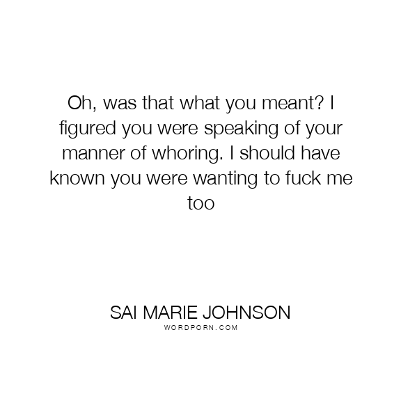Oh, was that what you meant? I figured you were speaking of your manner of whoring. I should have known you were wanting to fuck me too