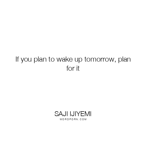 If you plan to wake up tomorrow, plan for it