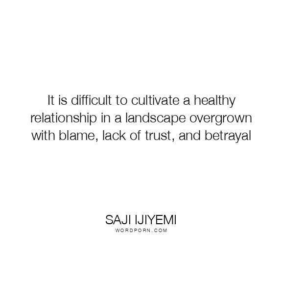 It is difficult to cultivate a healthy relationship in a landscape overgrown with blame, lack of trust, and betrayal