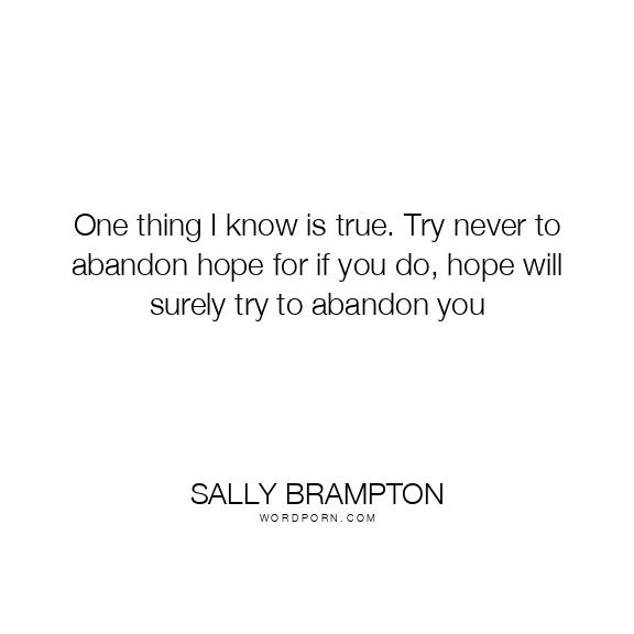 One thing I know is true. Try never to abandon hope for if you do, hope will surely try to abandon you