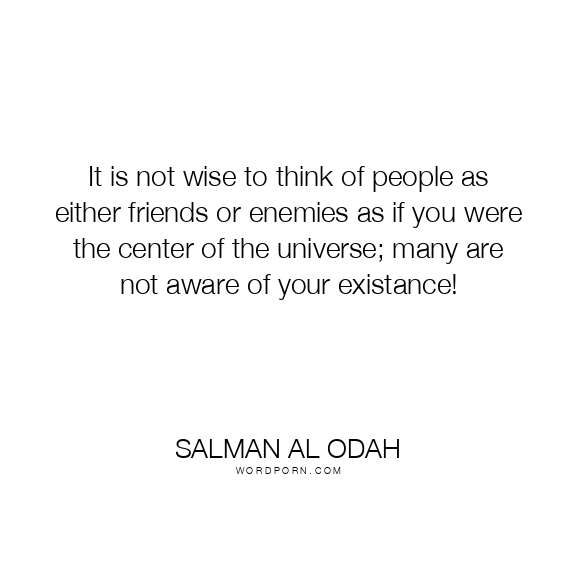 Copy Image It is not wise to think of people as either friends or enemies as if you were the center of the universe; many are not aware of your existance! Moms Typewriter A A SAVE THIS IMAGE