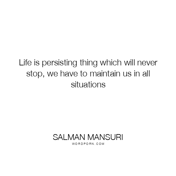 Life is persisting thing which will never stop, we have to maintain us in all situations