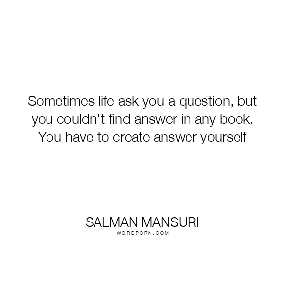 Sometimes life ask you a question, but you couldn't find answer in any book. You have to create answer yourself