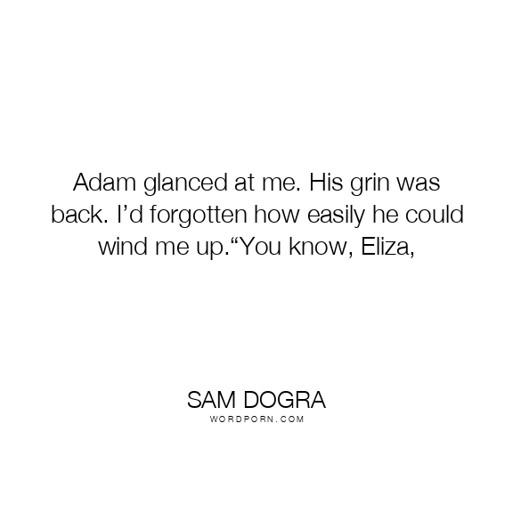Adam glanced at me. His grin was back. I’d forgotten how easily he could wind me up.“You know, Eliza,