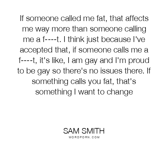 If someone called me fat, that affects me way more than someone calling me a f----t. I think just because I've accepted that, if someone calls me a f----t, it's like, I am gay and I'm proud to be gay so there's no issues there. If something calls you fat, that's something I want to change