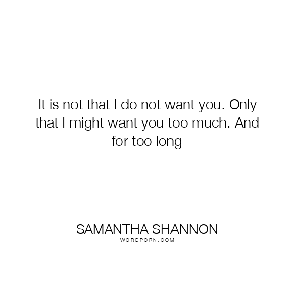 It is not that I do not want you. Only that I might want you too much. And for too long