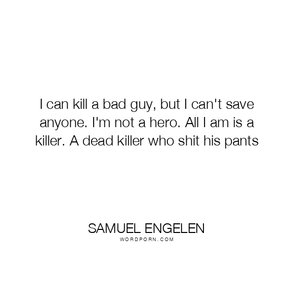 Copy Image I can kill a bad guy, but I can't save anyone. I'm not a hero. All I am is a killer. A dead killer who shit his pants Moms Typewriter A A SAVE THIS IMAGE