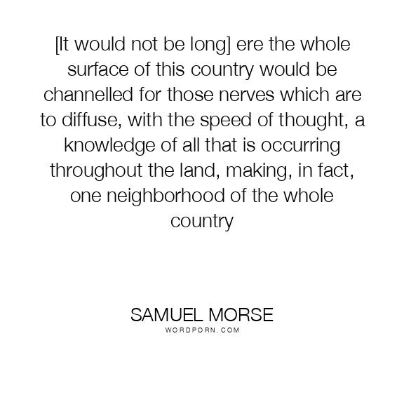 [It would not be long] ere the whole surface of this country would be channelled for those nerves which are to diffuse, with the speed of thought, a knowledge of all that is occurring throughout the land, making, in fact, one neighborhood of the whole country