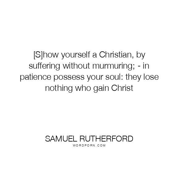 Samuel Rutherford quote. [S]how yourself a Christian, by suffering without murmuring; - in patience possess your soul: they lose nothing who gain Christ