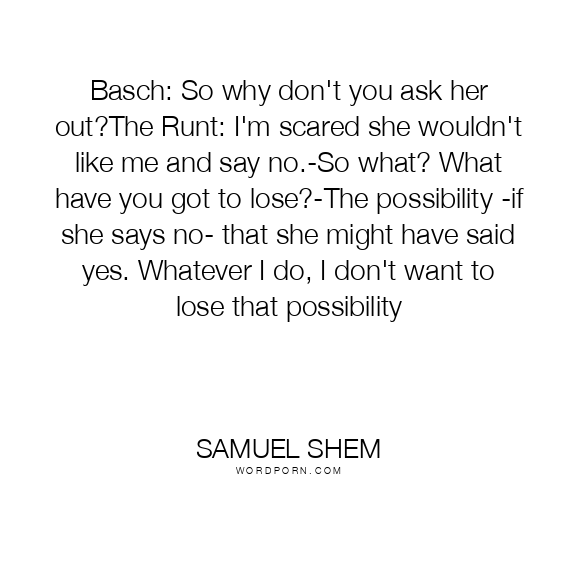 Basch: So why don't you ask her out?The Runt: I'm scared she wouldn't like me and say no.-So what? What have you got to lose?-The possibility -if she says no- that she might have said yes. Whatever I do, I don't want to lose that possibility