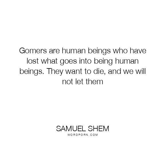 Gomers are human beings who have lost what goes into being human beings. They want to die, and we will not let them