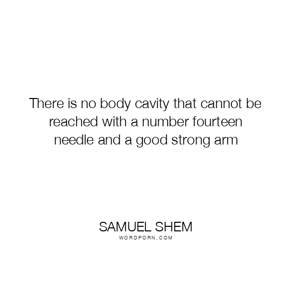 There is no body cavity that cannot be reached with a number fourteen needle and a good strong arm