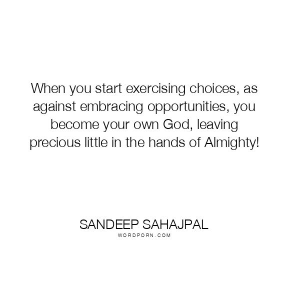 Copy Image When you start exercising choices, as against embracing opportunities, you become your own God, leaving precious little in the hands of Almighty! Moms Typewriter A A SAVE THIS IMAGE