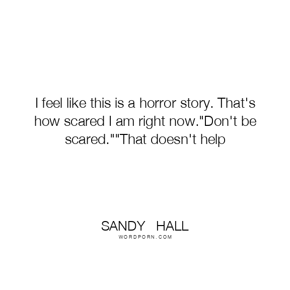 I feel like this is a horror story. That's how scared I am right now."Don't be scared.""That doesn't help