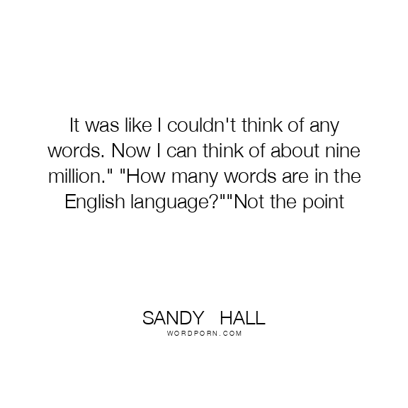 It was like I couldn't think of any words. Now I can think of about nine million." "How many words are in the English language?""Not the point