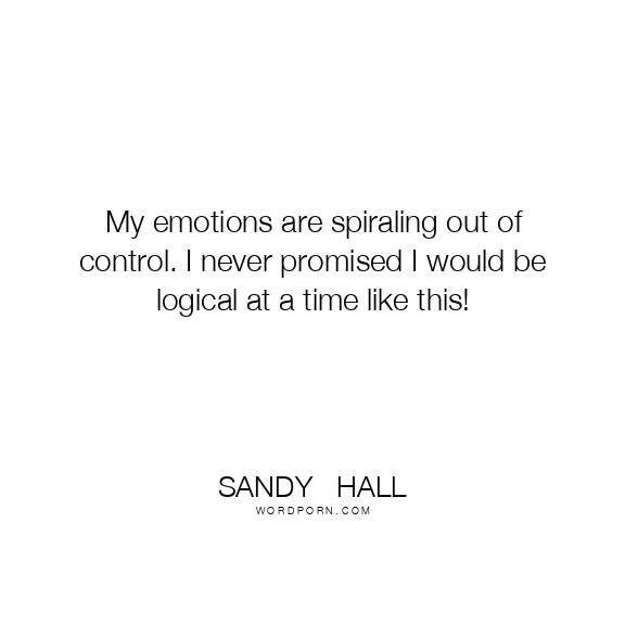 My emotions are spiraling out of control. I never promised I would be logical at a time like this!