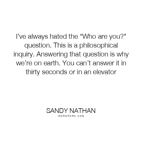 I’ve always hated the “Who are you?" question. This is a philosophical inquiry. Answering that question is why we’re on earth. You can’t answer it in thirty seconds or in an elevator