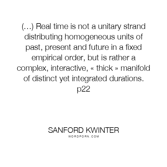(…) Real time is not a unitary strand distributing homogeneous units of past, present and future in a fixed empirical order, but is rather a complex, interactive, « thick » manifold of distinct yet integrated durations. p22