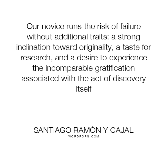 Our novice runs the risk of failure without additional traits: a strong inclination toward originality, a taste for research, and a desire to experience the incomparable gratification associated with the act of discovery itself