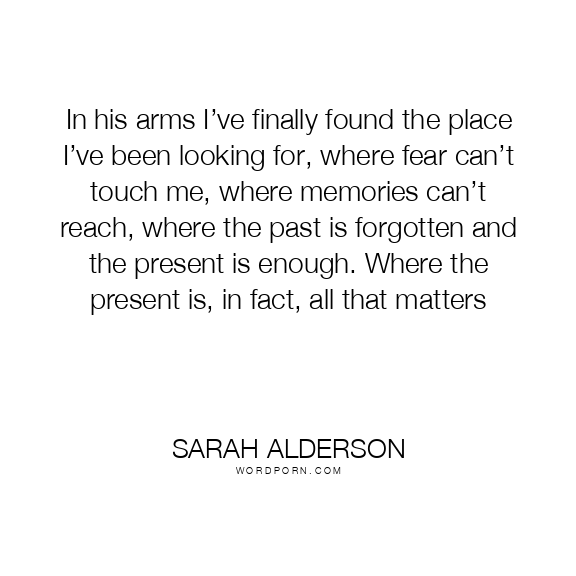 In his arms I’ve finally found the place I’ve been looking for, where fear can’t touch me, where memories can’t reach, where the past is forgotten and the present is enough. Where the present is, in fact, all that matters