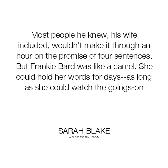Most people he knew, his wife included, wouldn't make it through an hour on the promise of four sentences. But Frankie Bard was like a camel. She could hold her words for days--as long as she could watch the goings-on