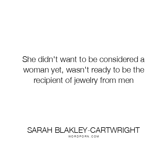 Copy Image She didn't want to be considered a woman yet, wasn't ready to be the recipient of jewelry from men Moms Typewriter A A SAVE THIS IMAGE