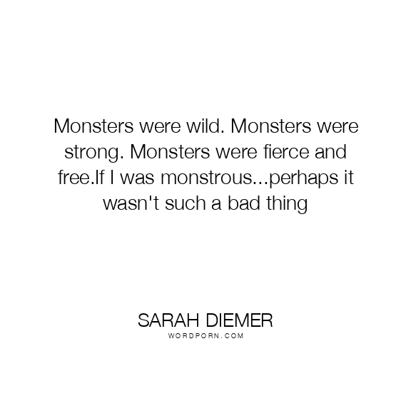 Monsters were wild. Monsters were strong. Monsters were fierce and free.If I was monstrous...perhaps it wasn't such a bad thing