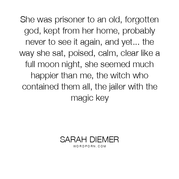 She was prisoner to an old, forgotten god, kept from her home, probably never to see it again, and yet... the way she sat, poised, calm, clear like a full moon night, she seemed much happier than me, the witch who contained them all, the jailer with the magic key