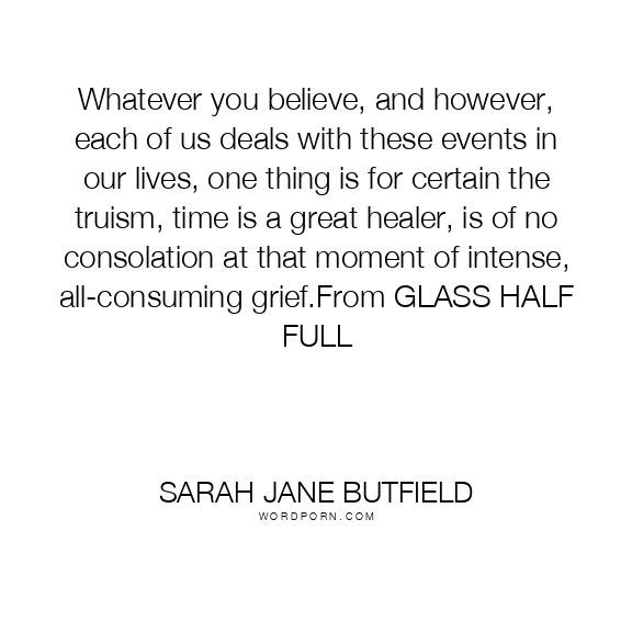 Whatever you believe, and however, each of us deals with these events in our lives, one thing is for certain the truism, time is a great healer, is of no consolation at that moment of intense, all-consuming grief.From GLASS HALF FULL