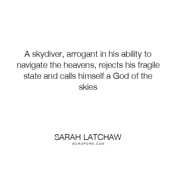Copy Image A skydiver, arrogant in his ability to navigate the heavens, rejects his fragile state and calls himself a God of the skies Moms Typewriter A A SAVE THIS IMAGE