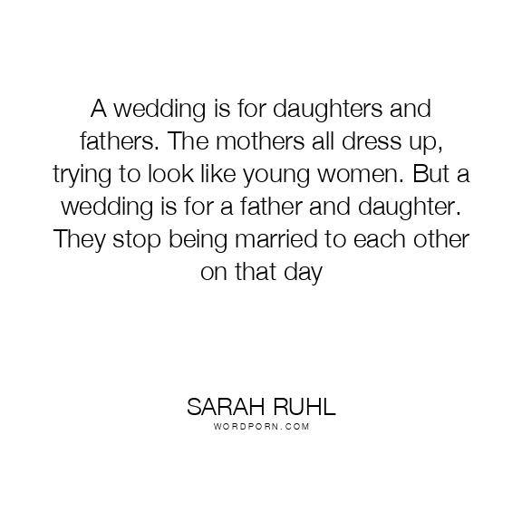 A wedding is for daughters and fathers. The mothers all dress up, trying to look like young women. But a wedding is for a father and daughter. They stop being married to each other on that day