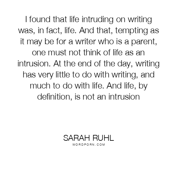 I found that life intruding on writing was, in fact, life. And that, tempting as it may be for a writer who is a parent, one must not think of life as an intrusion. At the end of the day, writing has very little to do with writing, and much to do with life. And life, by definition, is not an intrusion