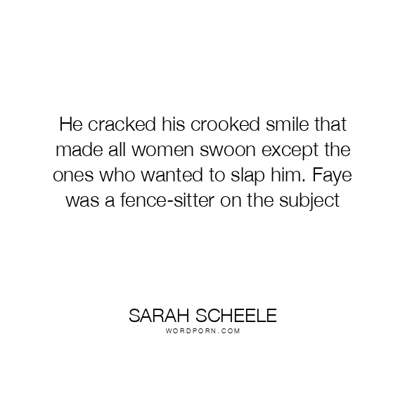 Copy Image He cracked his crooked smile that made all women swoon except the ones who wanted to slap him. Faye was a fence-sitter on the subject Moms Typewriter A A SAVE THIS IMAGE