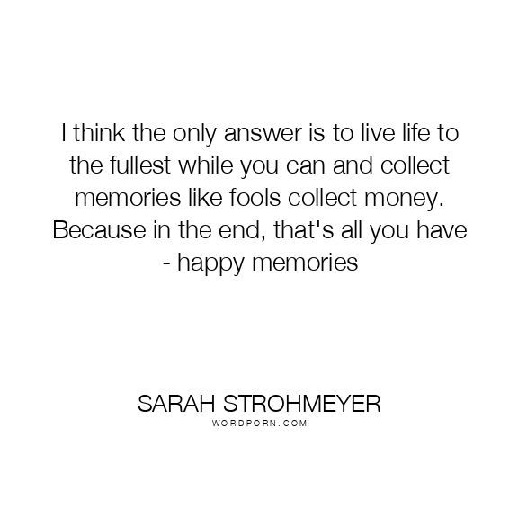 I think the only answer is to live life to the fullest while you can and collect memories like fools collect money. Because in the end, that's all you have - happy memories
