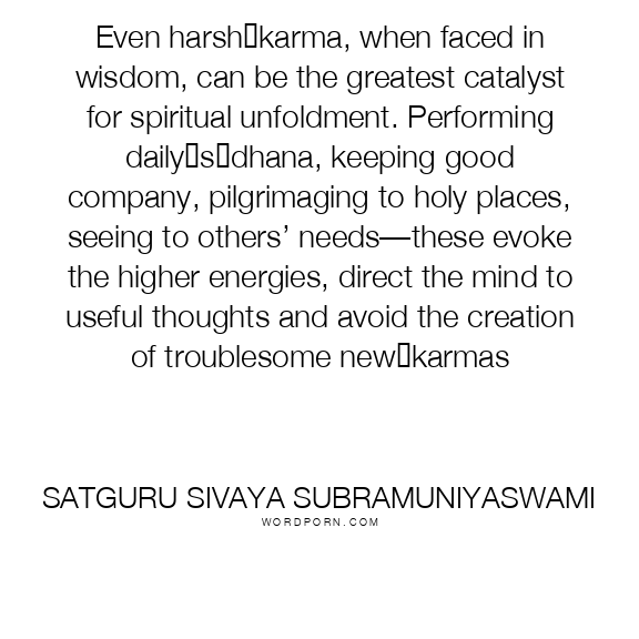 Even harsh karma, when faced in wisdom, can be the greatest catalyst for spiritual unfoldment. Performing daily sādhana, keeping good company, pilgrimaging to holy places, seeing to others’ needs—these evoke the higher energies, direct the mind to useful thoughts and avoid the creation of troublesome new karmas