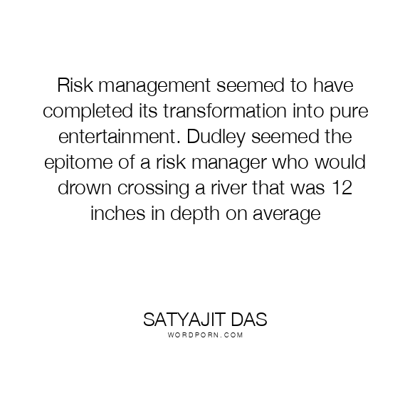 Risk management seemed to have completed its transformation into pure entertainment. Dudley seemed the epitome of a risk manager who would drown crossing a river that was 12 inches in depth on average