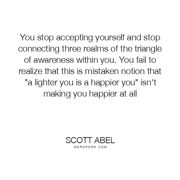 You stop accepting yourself and stop connecting three realms of the triangle of awareness within you. You fail to realize that this is mistaken notion that "a lighter you is a happier you" isn't making you happier at all