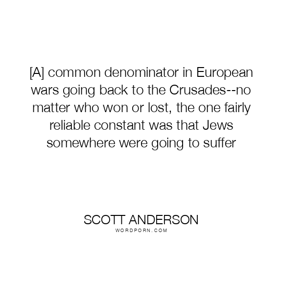 [A] common denominator in European wars going back to the Crusades--no matter who won or lost, the one fairly reliable constant was that Jews somewhere were going to suffer
